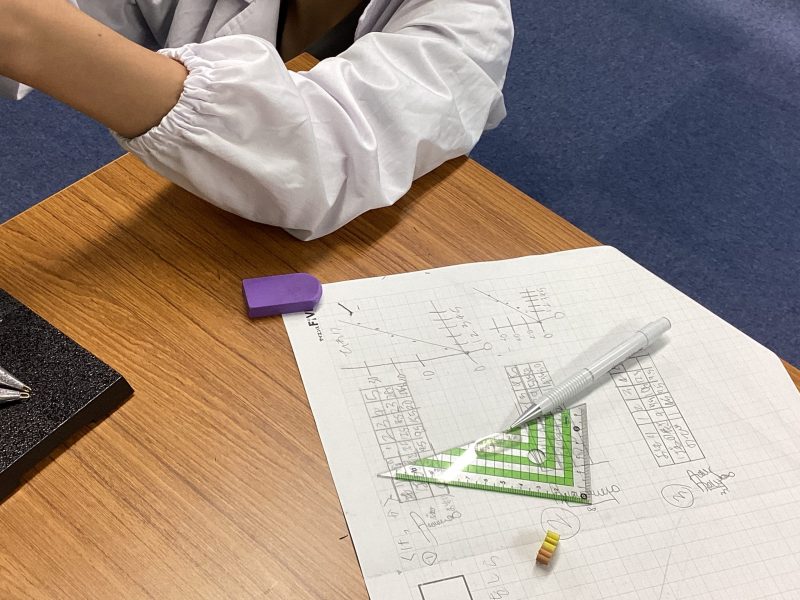 という手順で、ばねをいろいろ組み合わせて実験し、グラフにしていきました。