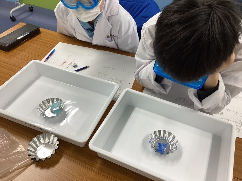 トレーを使って安全な実験を~理科実験教室
