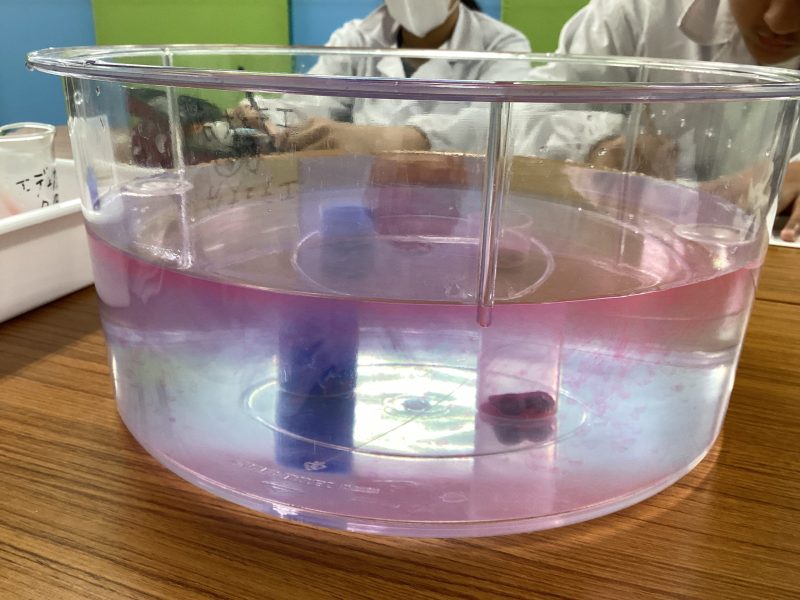 赤いお湯(熱を持っている)はどんどん上に出ていき、青い冷水(熱を持っていない)は出てきませんでした。