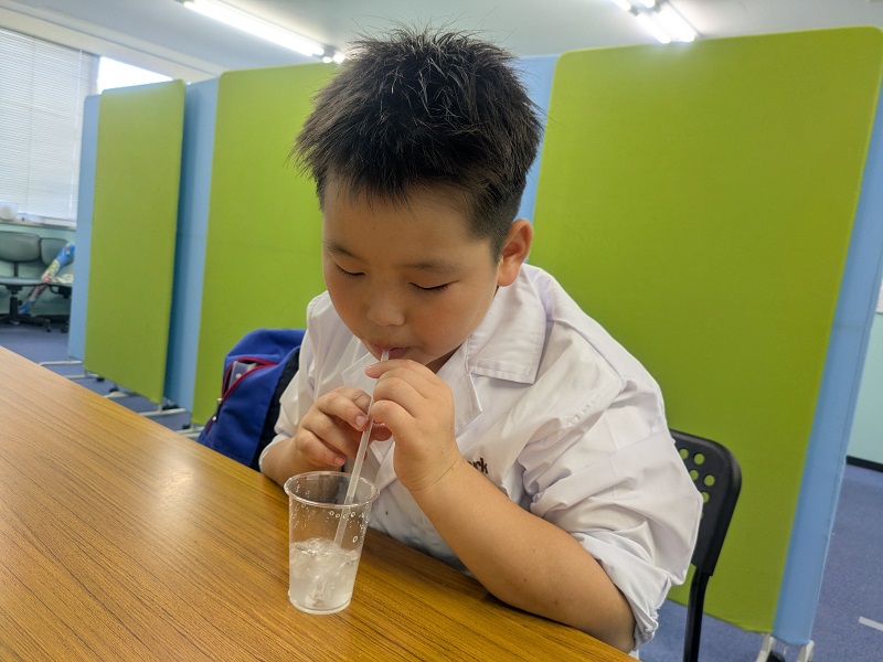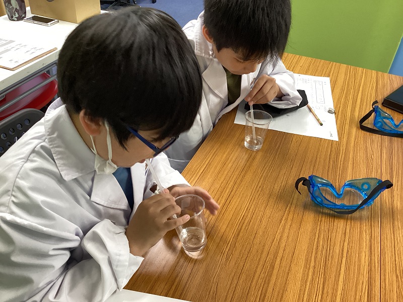 この「石灰水」をものを燃やした集気びんの中に入れて一生懸命振ってもらいました。
