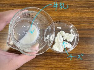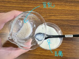 「じゃあ、二つとも液体だけど、チーズや豆腐はどうかな?」