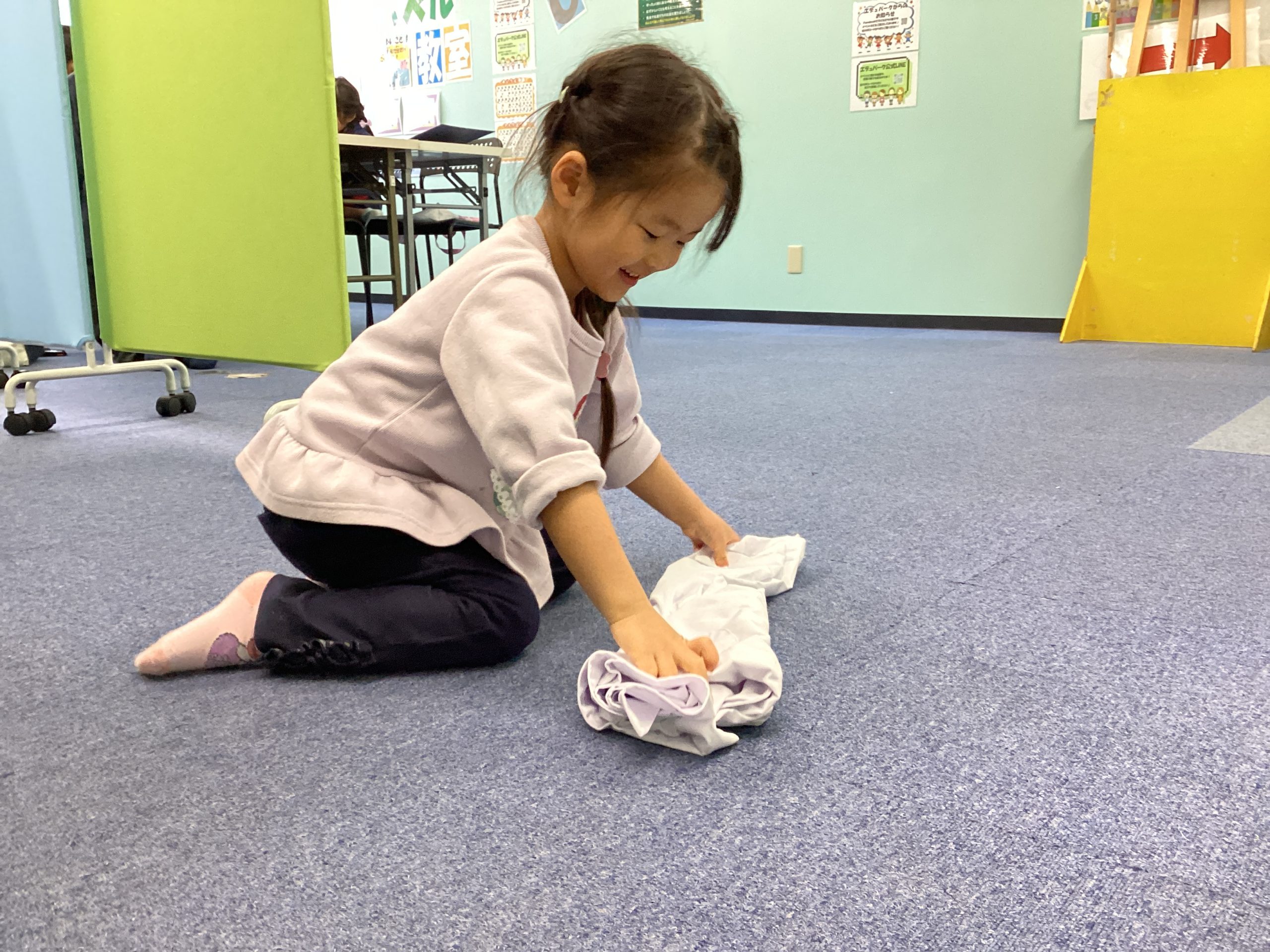 干して乾かしたあと、畳む。までが洗濯なので、次は服を畳んでもらいました👕