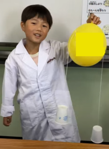 風船も声で振動するなら、先ほど作った糸電話の糸を切って