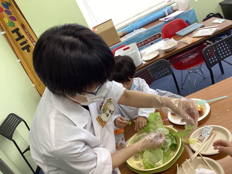 挟もうよ!と声をかけたら、みんなレタスを挟んでくれました。