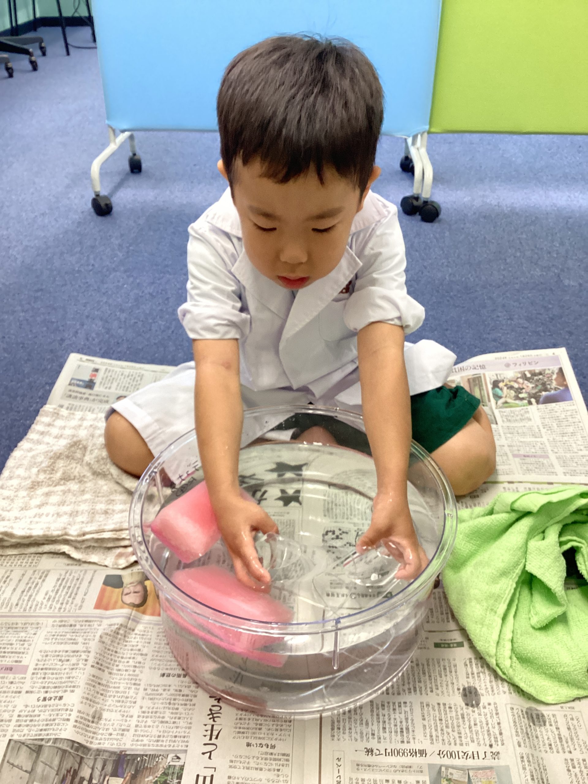 勢いよく空気を出して、ちょっと水浸しになったけど、