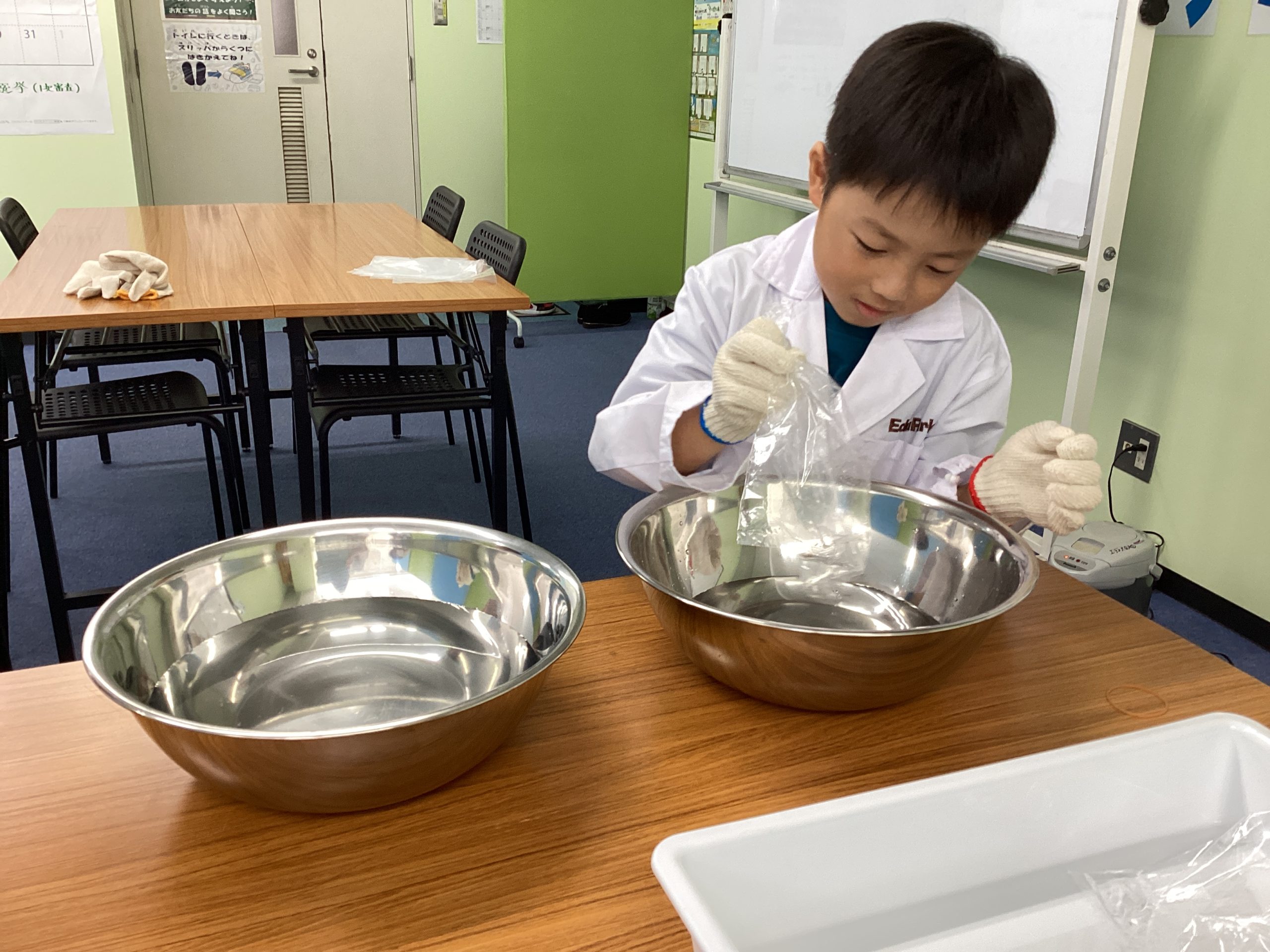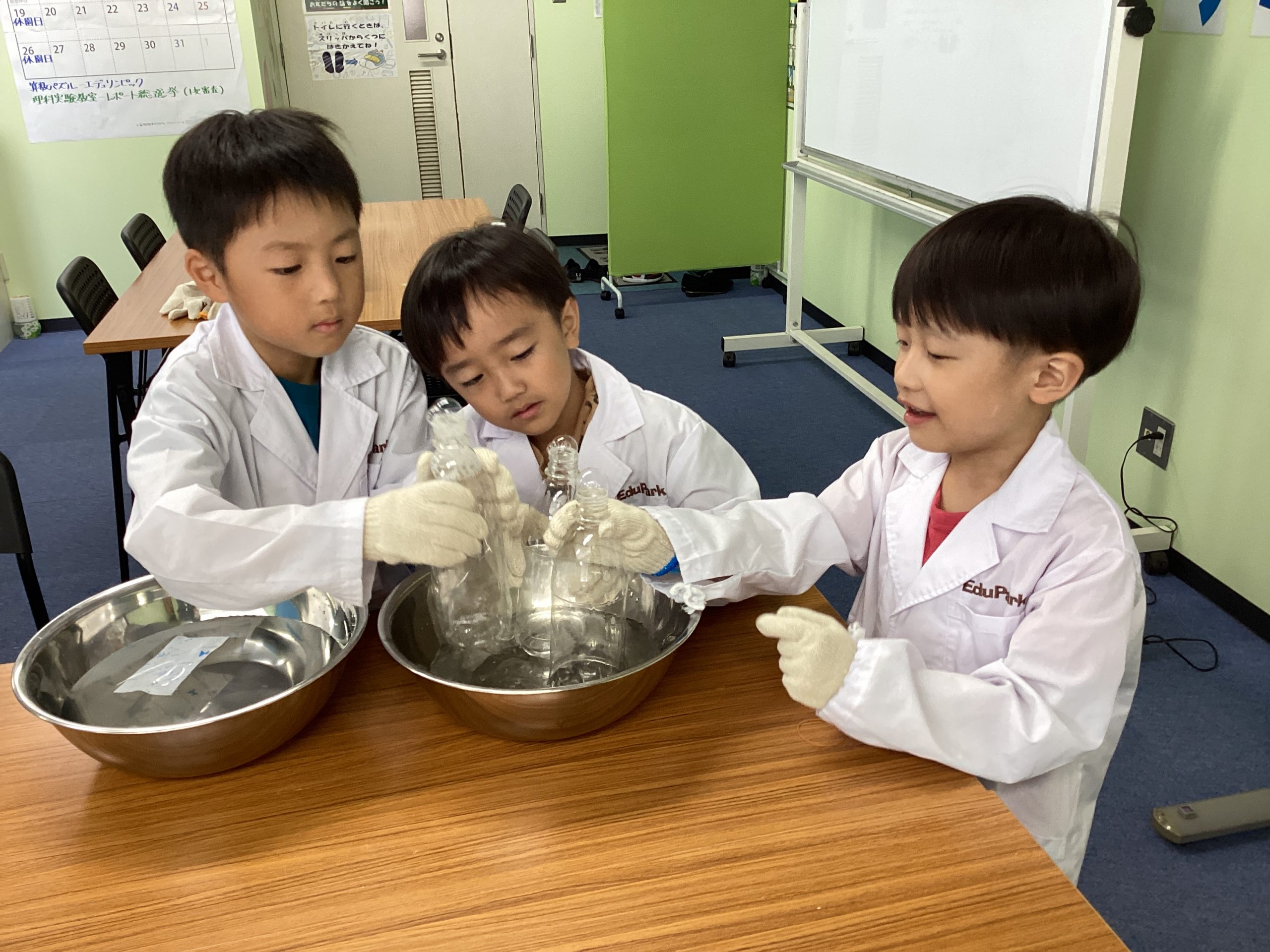 ひまわりくらぶではみんなで一緒に実験することがあります。