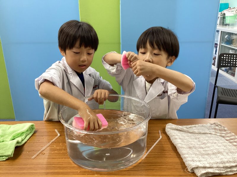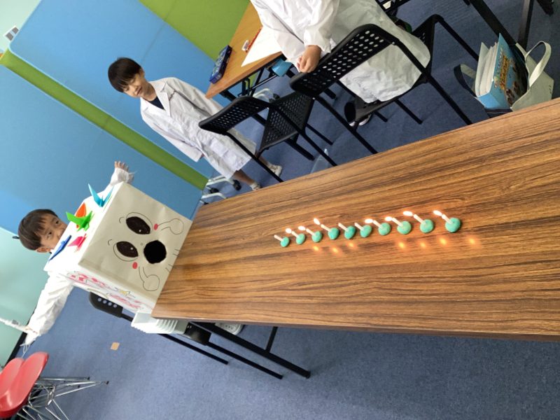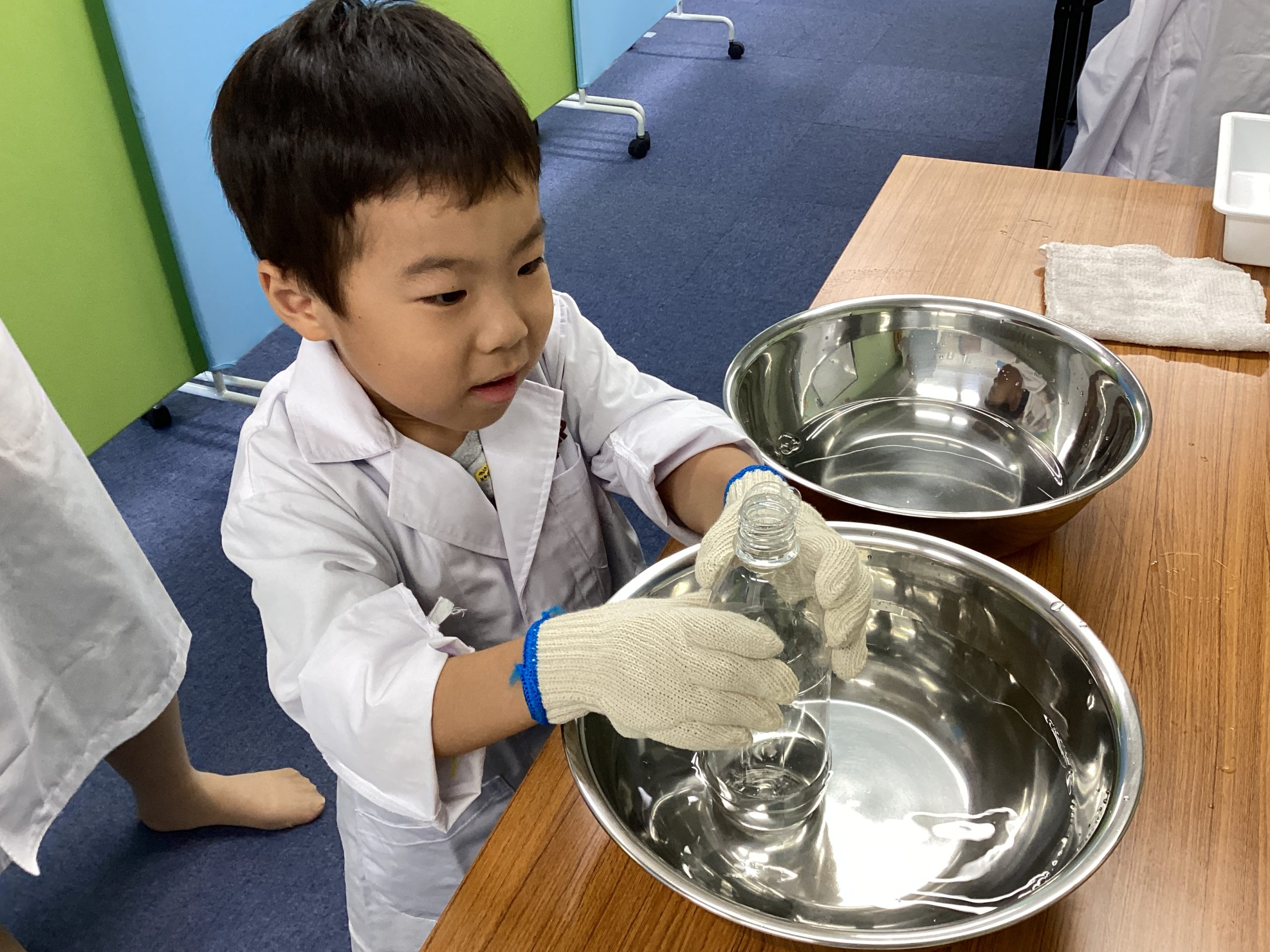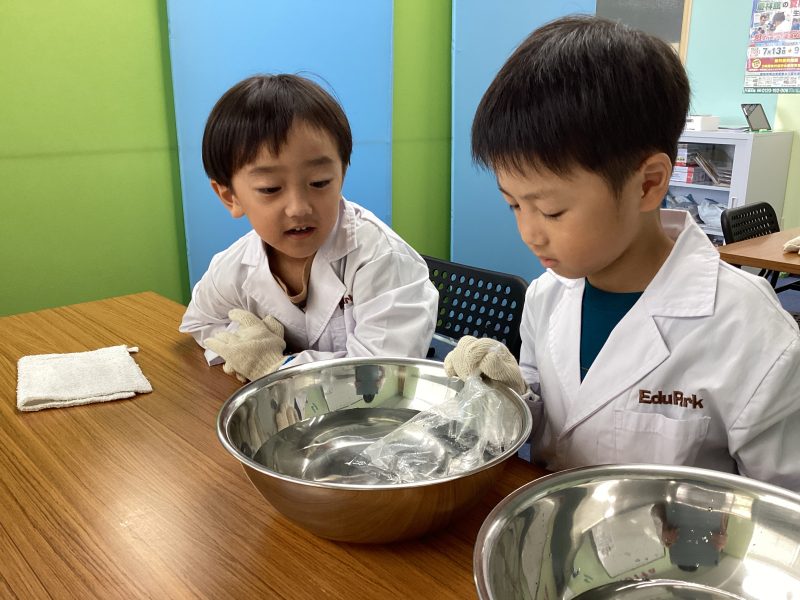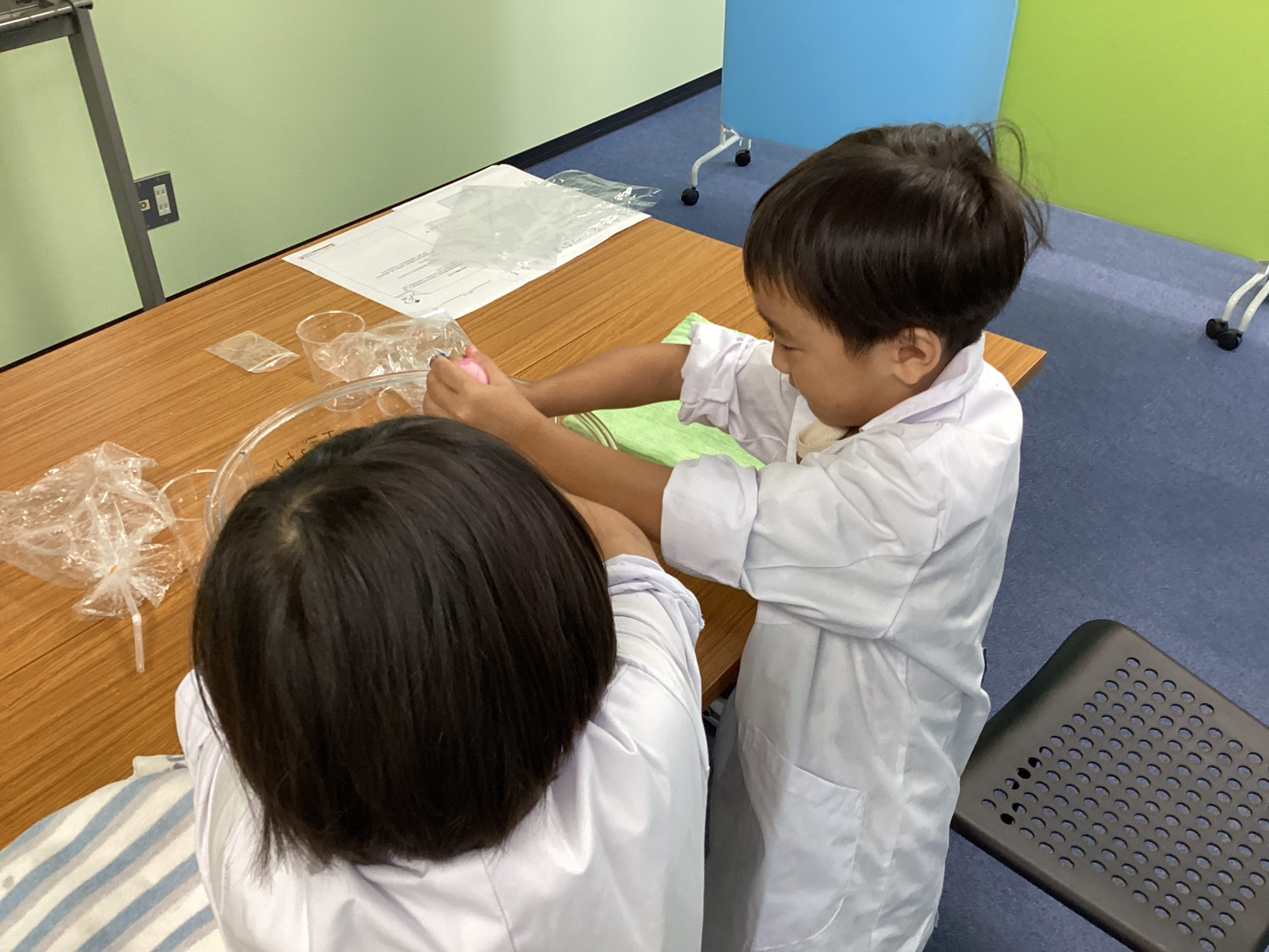 ひまわりくらぶでは身近にあるものを使って実験を行います。