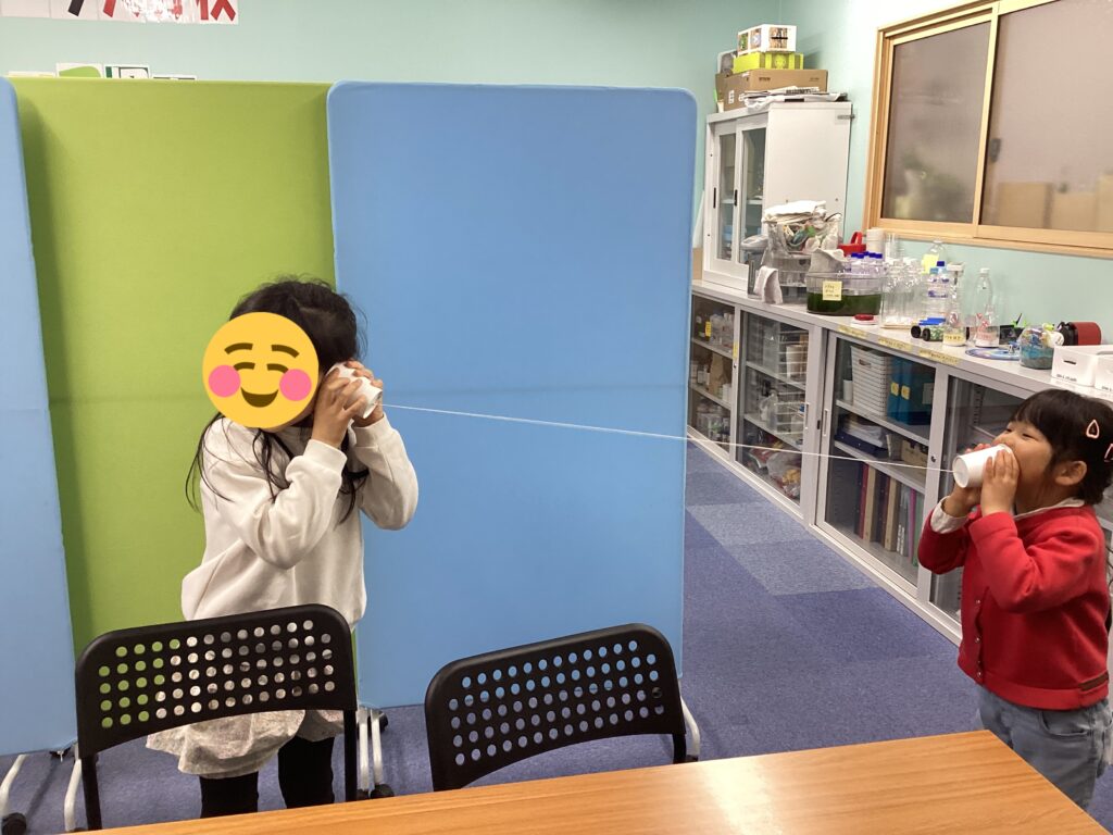 糸電話を使って実験しました🎵大きな声を出し過ぎないよう注意しながら