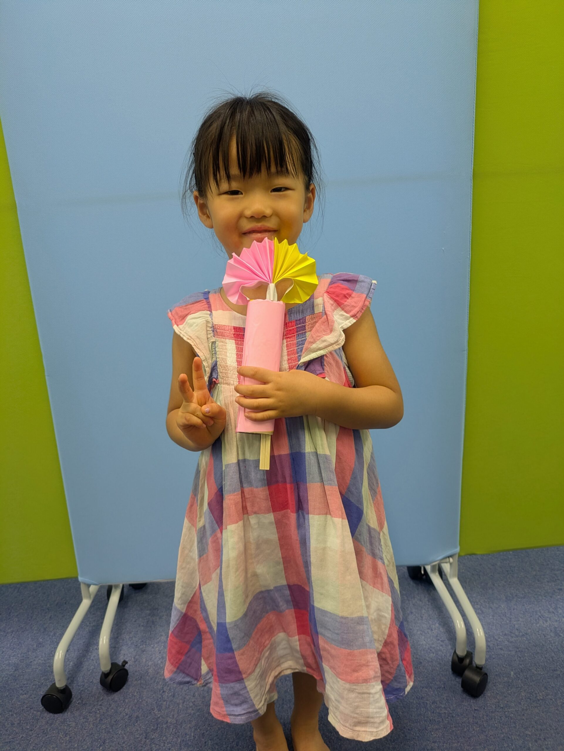 ちょっと難しかったですが、お友達と助け合いながら折っていました。