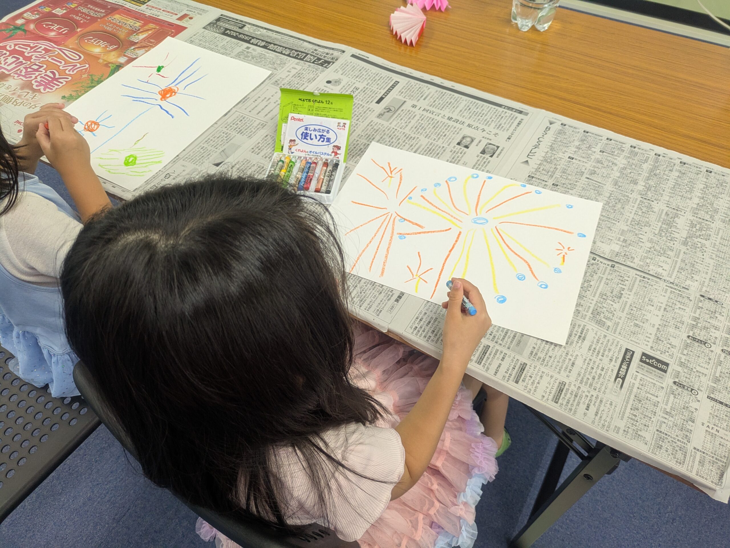 熱くない花火を作った後は、画用紙に花火の絵を書きました。