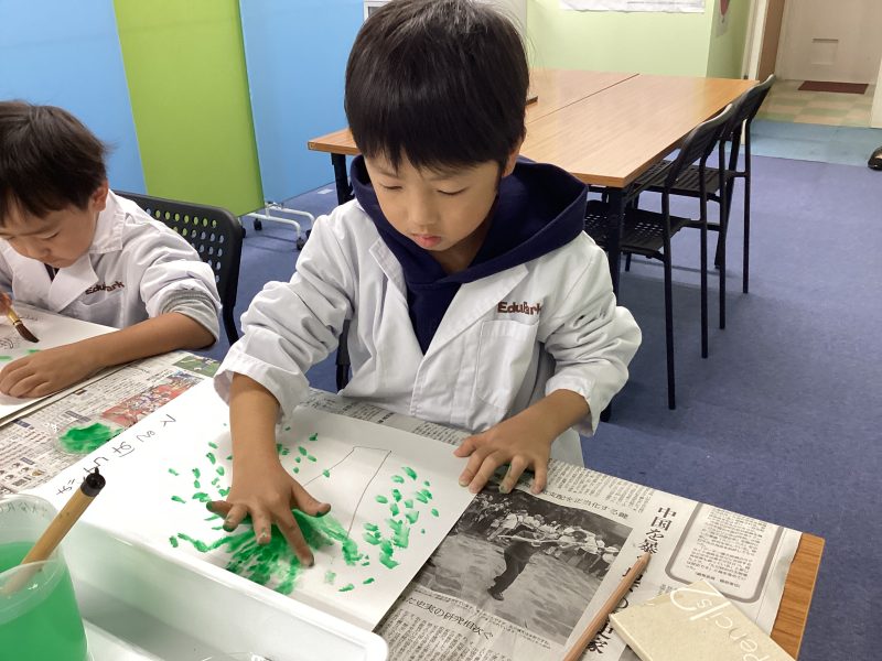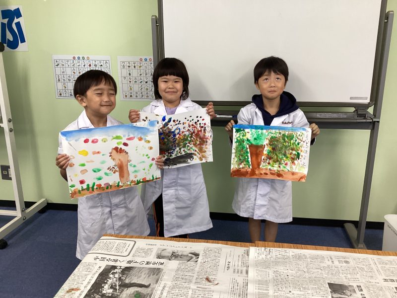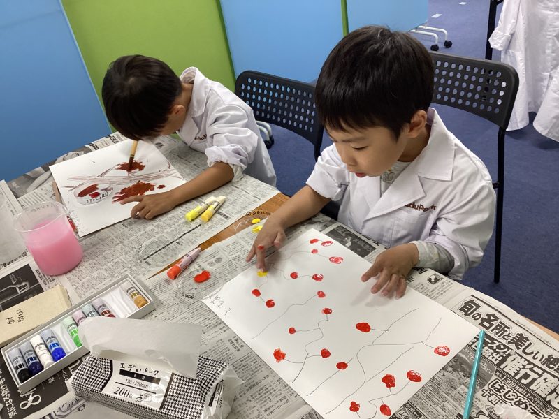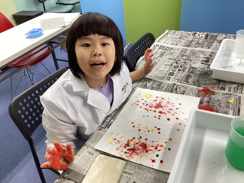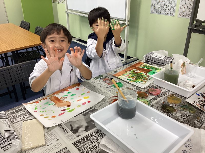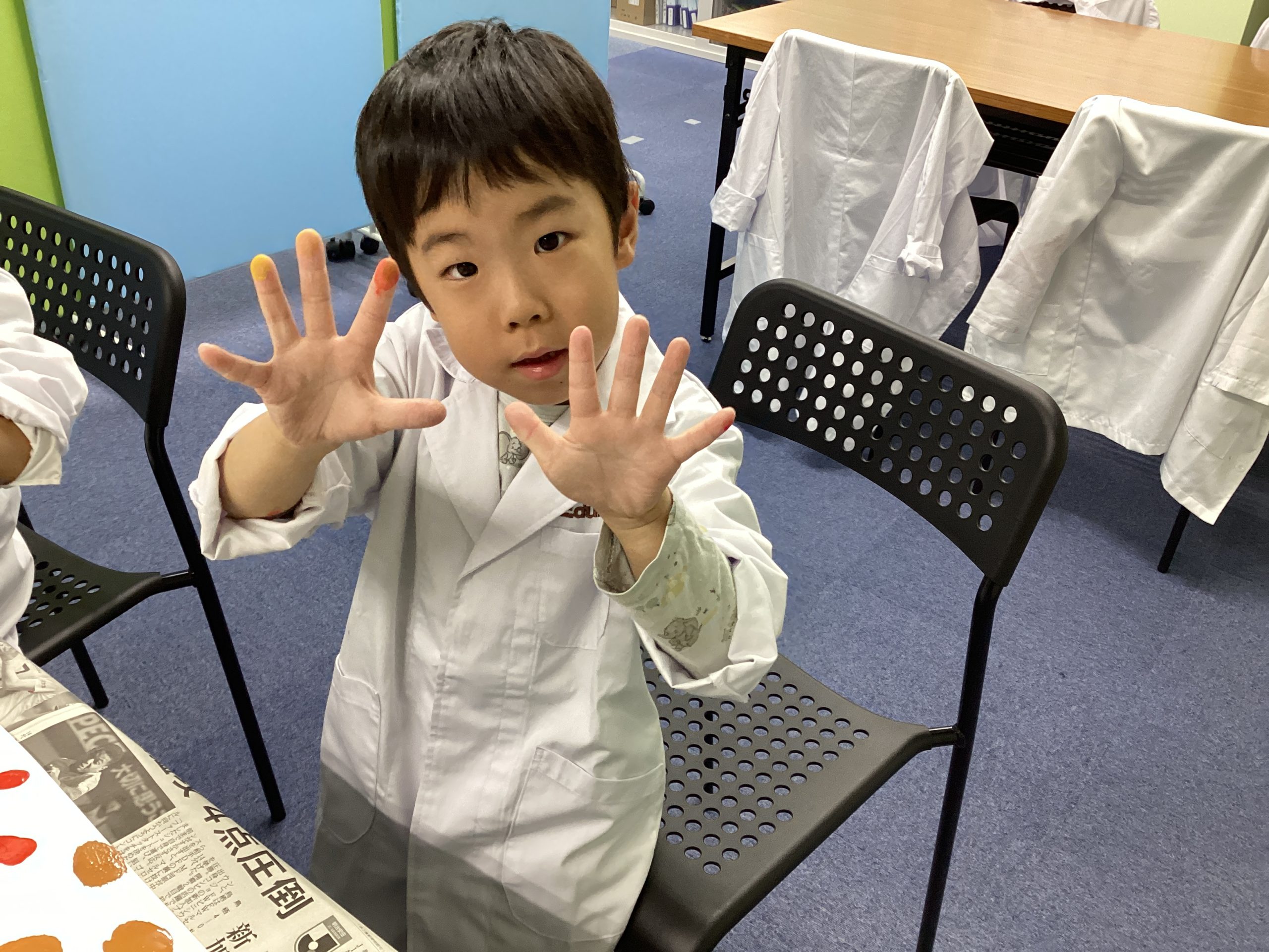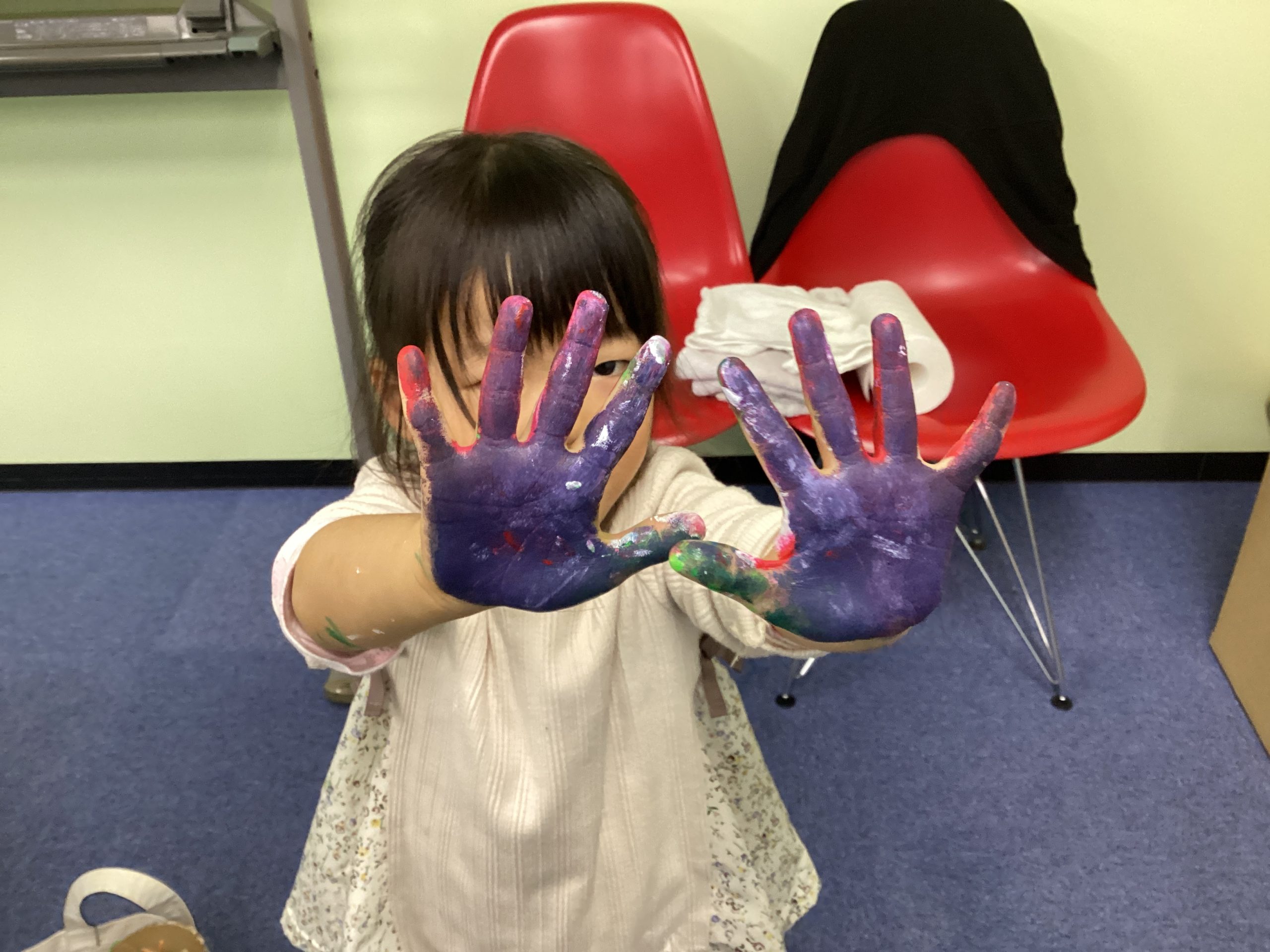 途中、手に絵の具をつけることに一生懸命になる時間もあり、