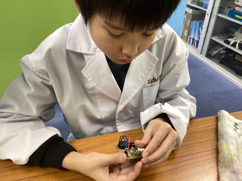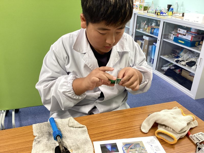 「理科実験教室」の実験を紹介します。 高学年クラスは、イルミネーションづくりに入りました。 小さな基板に60か所!をこえる 細かな「はんだづけ」をしなければいけませんが、 みんな慣れた手つきですすめています。 はんだづけが終わったら、チェック作業に入ります。 さあ、どんなイルミネーションの光が見られたのでしょうか?! この感動を、ぜひ体験しませんか。 楽しさと学びを両立できる「理科実験教室」では無料体験授業を受け付けていますので、 どうぞお問い合わせください。 エデュパーク大分校 望月 こちらの記事もよく読まれています 炎色反応~理科実験教室2,3年生クラス~ 『人工イクラ』を作ろう! 〜理科実験教室〜 アルコールランプの使い方~理科実験教室1年生~ いろんなスライムを作ろう!!~理科実験教室~ よのなか探究~6月授業①~