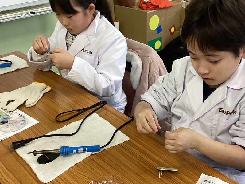 何度も電子工作に取り組んできた6年生は、はんだづけも、一瞬で終えていきます。