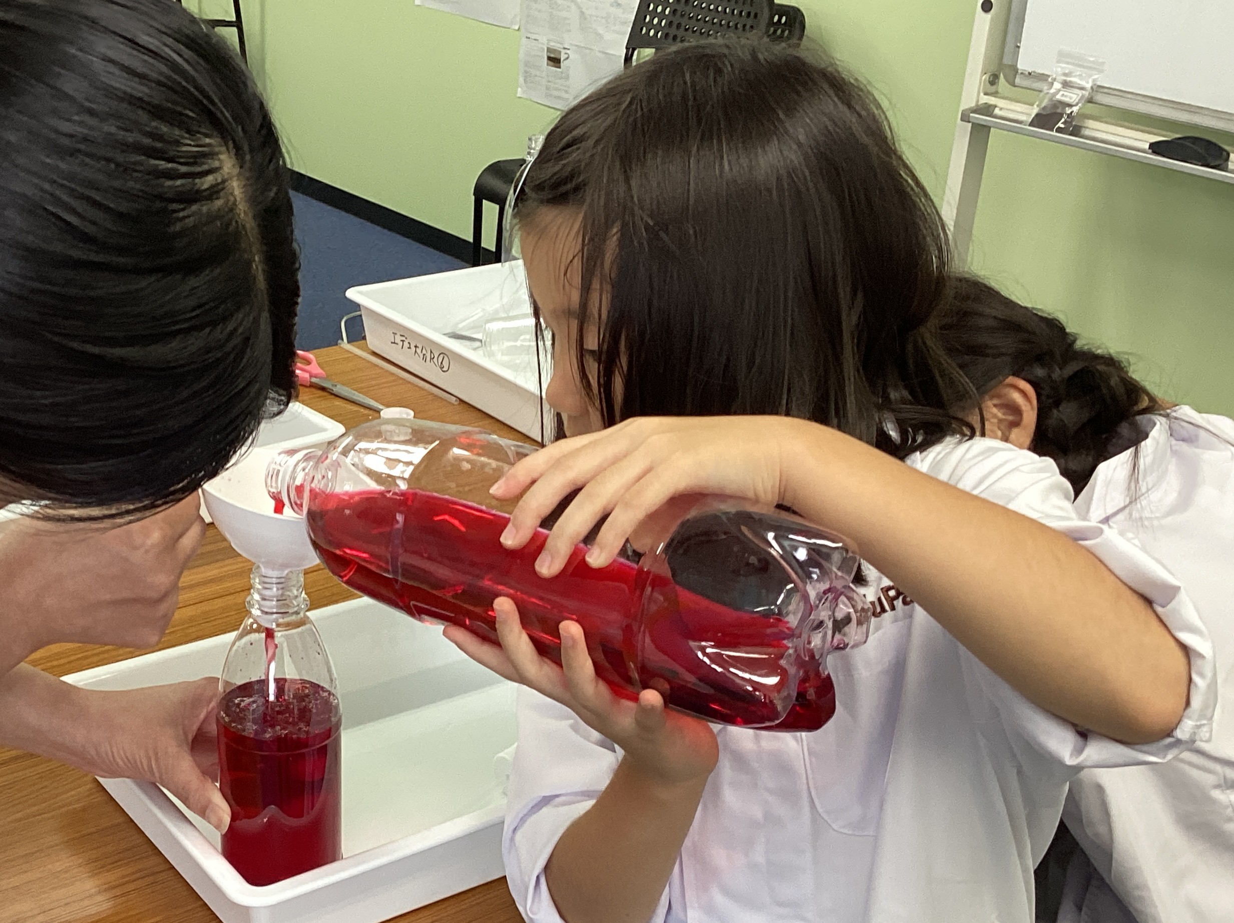 お湯で試してみたところ、どんどん赤い液体が上の方まで上がっていきました✌