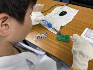 初めてのはんだ付けで、緊張しながらも