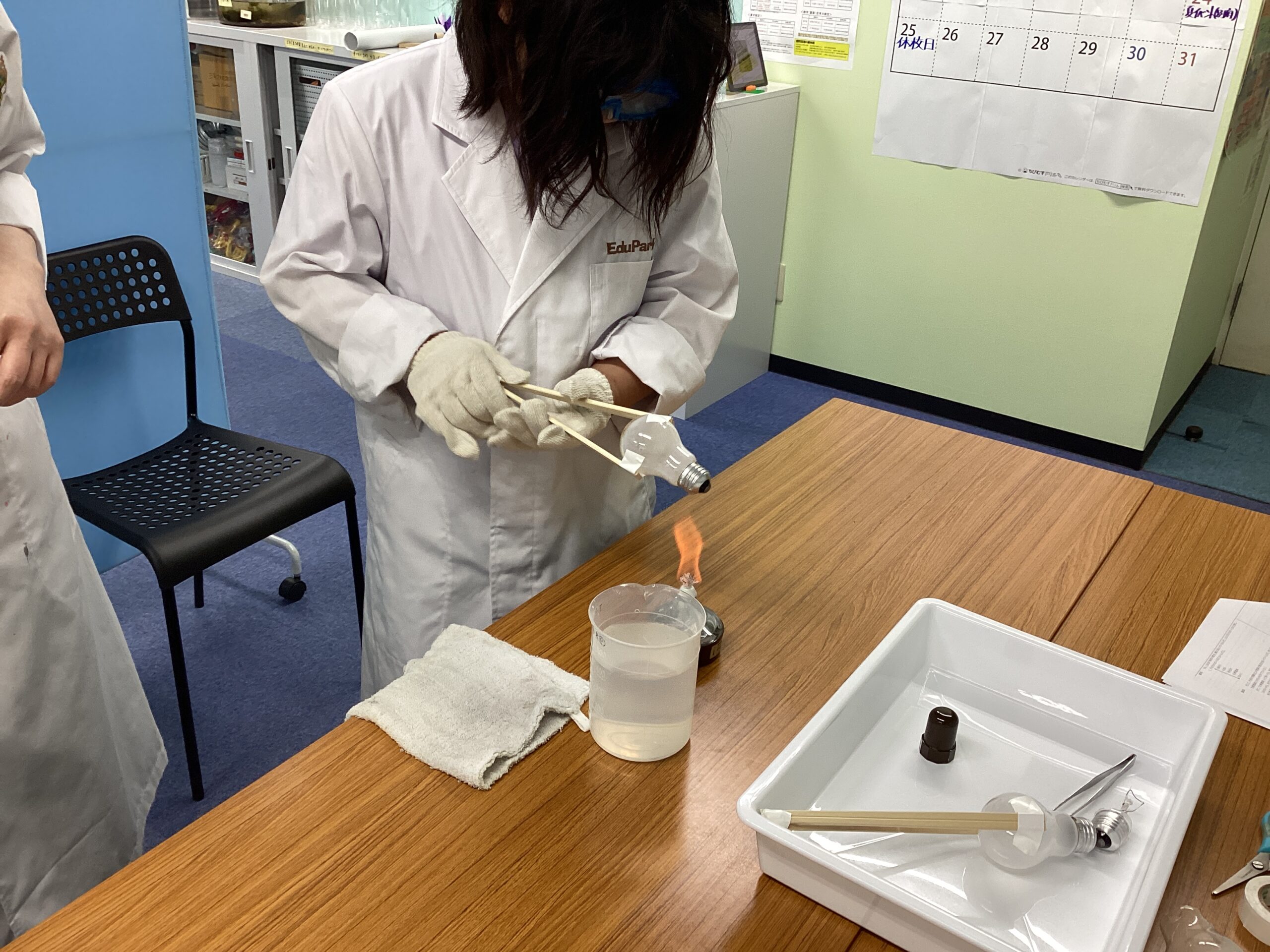 アルコールランプと水を使用しました。
