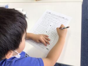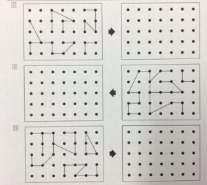 図形が複雑だったり、お手本と解答の位置が反対になったりして、つなぎ忘れた点があることもしばしば……